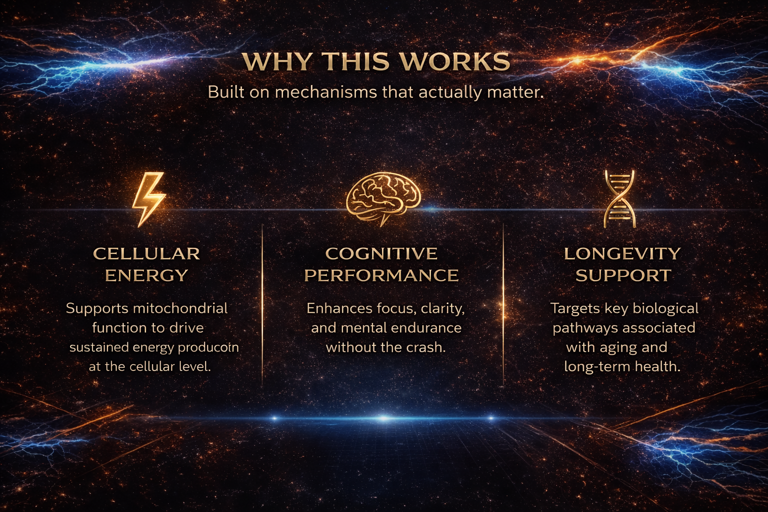 Built on clinically studied mechanisms tied to performance, cellular energy, and long-term health.